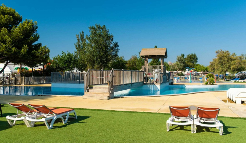 Blotti sous le massif de la Clape entre mer et garrigue, le Camping La Côte des Roses 4* est le plus grand camping de la station.
